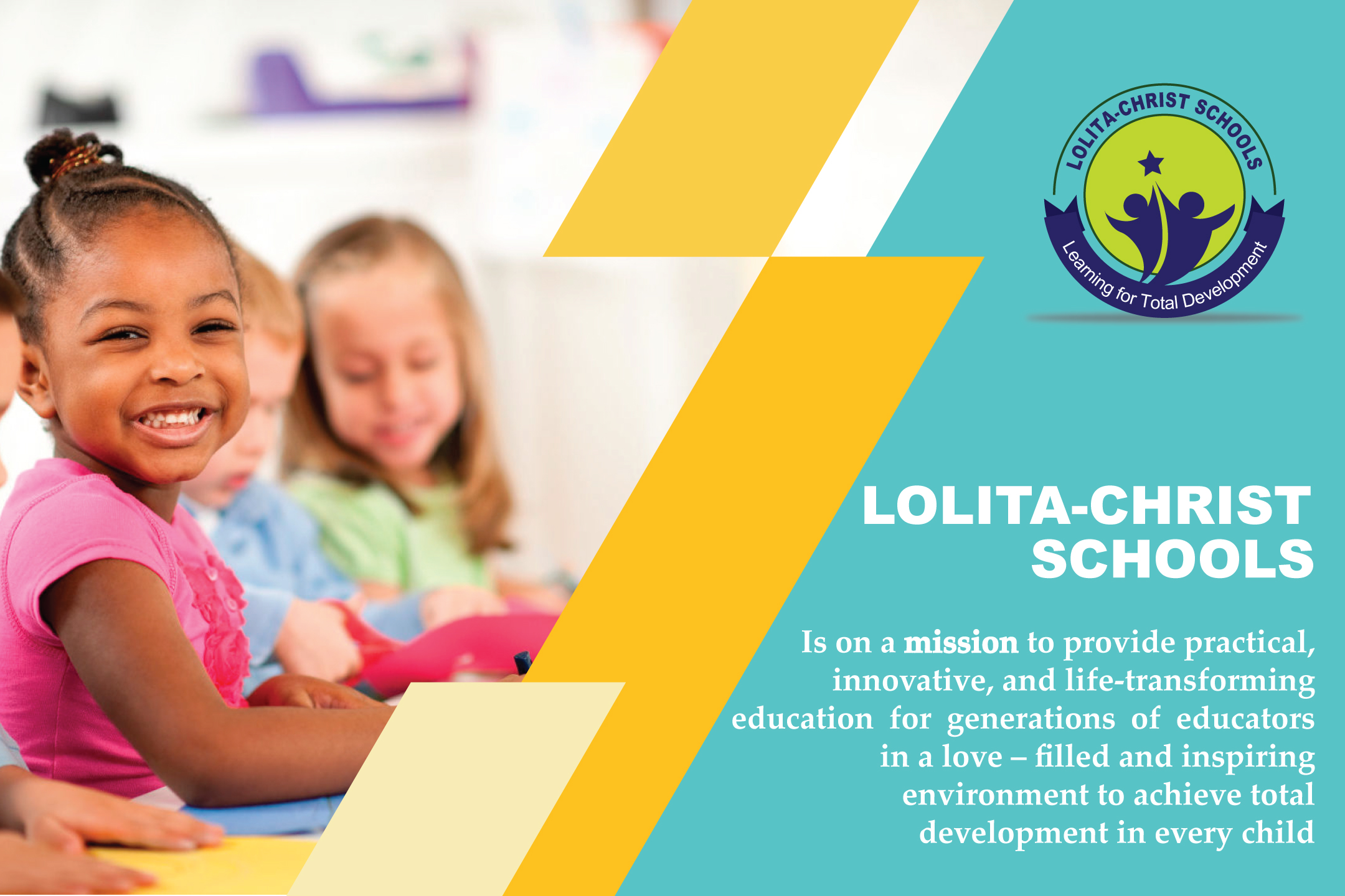 To provide practical, innovative, and life-transforming education for generations of educators in a love – filled and inspiring environment to achieve total development in every child.
